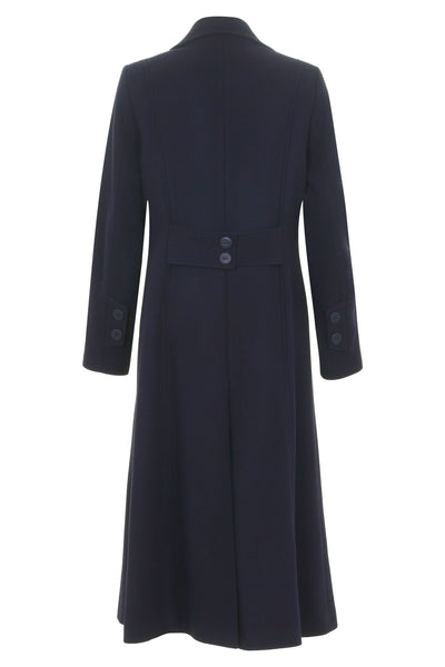 Stylish long wool blend coat, ideal for formal and everyday wear.